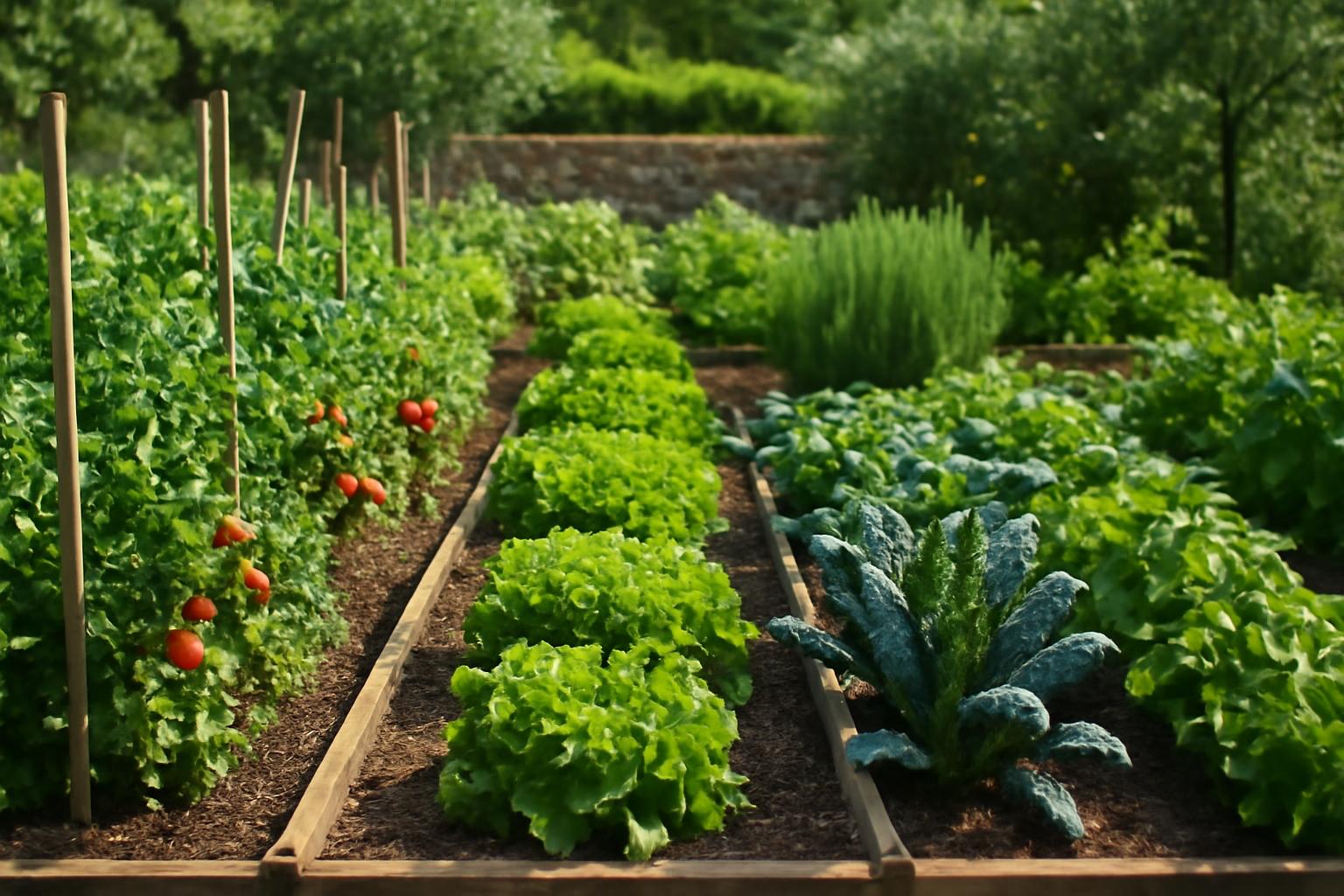Egy jól megtervezett kert figyelembe veszi a napfényviszonyokat, a talaj minőségét és a vízellátást. A mediterrán kertben gyakran találkozunk olyan zöldségekkel, mint a paradicsom, paprika, padlizsán, valamint olyan fűszerekkel, mint a rozmaring, bazsalikom és oregánó. Ezek a növények napos helyet igényelnek, valamint jól áteresztő talajt, hogy elkerülhető legyen a pangó víz okozta gyökérrothadás.